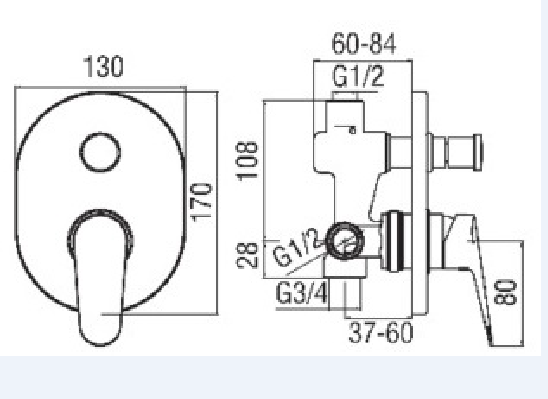 • Tipologia: miscelatore doccia a 2 uscite con deviatore con regolatore dinamico di portata