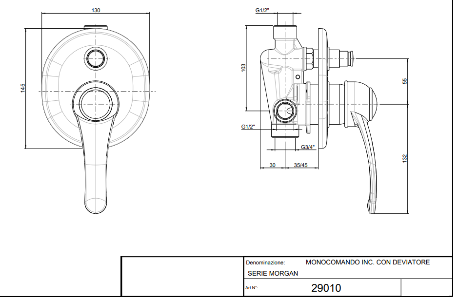 Miscelatore incasso doccia Fratelli Frattini modello Morgan art. 29010 fornito di piastra e deviatore automatico ed attacchi da ½" per un uso immediato ed agevole; realizzato in ottone Cromato, in grado di resistere al meglio ad umidità ed agenti esterni. Attacchi standard da ½" per garantire massima compatibilità con tutte le tipologie di impianti.