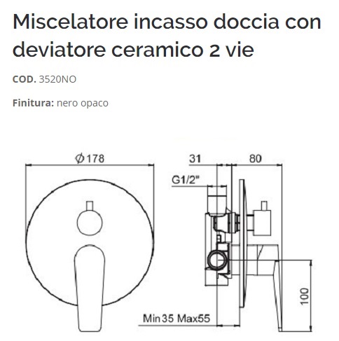 Tipologia: miscelatore doccia a 2 uscite con deviatore