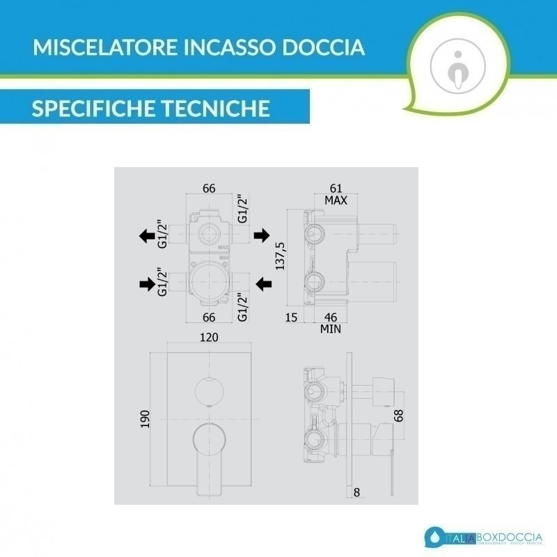Tipologia: miscelatore doccia a 2 uscite con deviatore + 1 posizione combinata