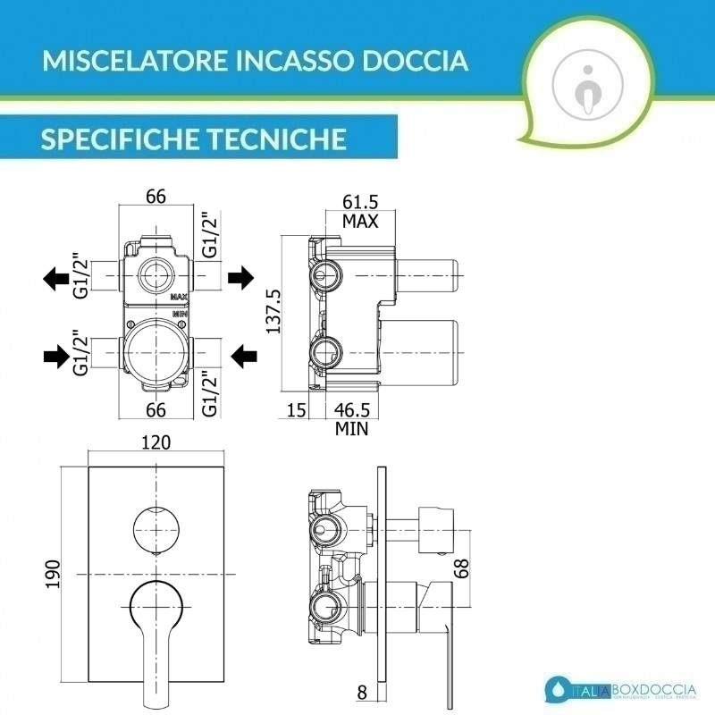 Tipologia: miscelatore doccia a 2 uscite con deviatore + 1 posizione combinata