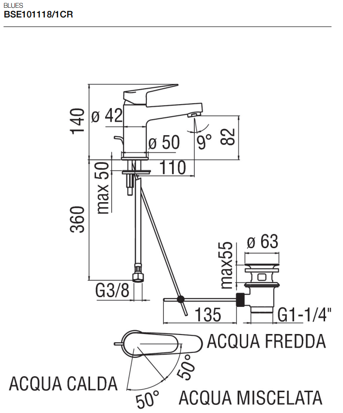 La sintesi geometrica della collezione Blues raggiunge la massima ergonomia attraverso un gesto fortemente espressivo: la tecnologia della cartuccia Nobili Widd® da 35 mm permette una linea dinamica ed elegante, con la bocca di erogazione alta e a filo del corpo miscelatore