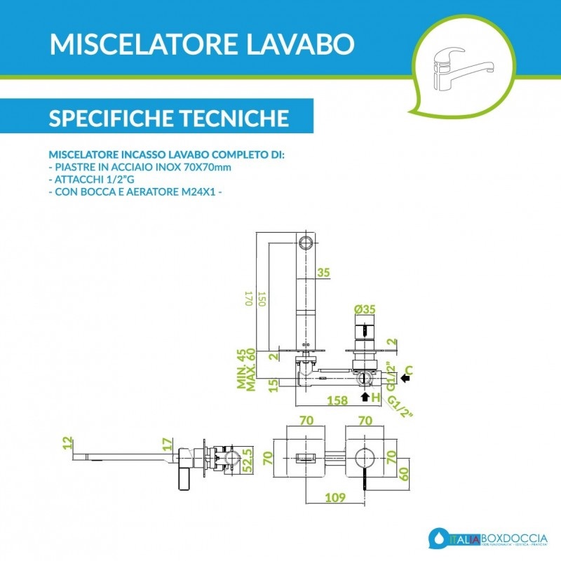 Lunghezza braccio erogatore: 150 mm