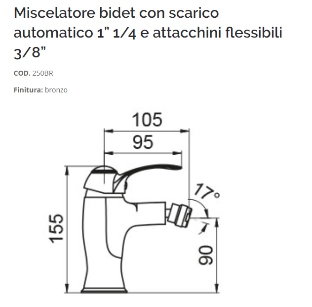 Per gli ambienti più rustici e vintage ItaliaBoxDoccia propone questa imperdibile linea di miscelatori contraddistinta da un design retrò e da un particolare effetto levigato. La particolarità del materiale utilizzato, l'ottone, dona un colore unico. Questo set di miscelatori per bidet e lavabo è un prodotto tecnicamente avanzato. Realizzato con materiali solidi, in modo da ottenere un rubinetto per l'uso quotidiano, risulta anche facile da pulire e installare. I miscelatori sono dotati ognuno di una cartuccia in ceramica, due tubi di collegamento e kit di fissaggio incluso.