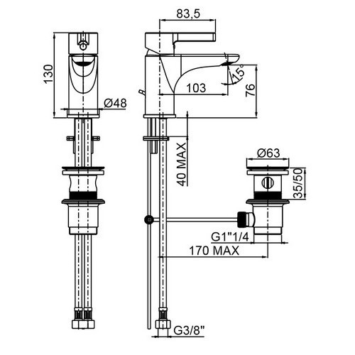 Il miscelatore lavabo art. 66054 è in ottone cromato con finiture lucide ed eleganti, a scarico automatico 1"1/4 (universale) completo di salterello, piletta e flessibile.