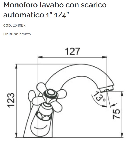 Nuovo miscelatore retrò per lavabo con scarico modello Croce Epoca fornito di 2 manopole a 4 punte per l'acqua calda e l'acqua fredda. Un'estetica non invadente inserita in uno stile ben preciso dal fascino vintage. Il miscelatore è realizzato in ottone bronzato con manopole a 4 punte. Gli attacchi standard da ½" garantiscono la massima compatibilità con tutte le tipologie di impianti.