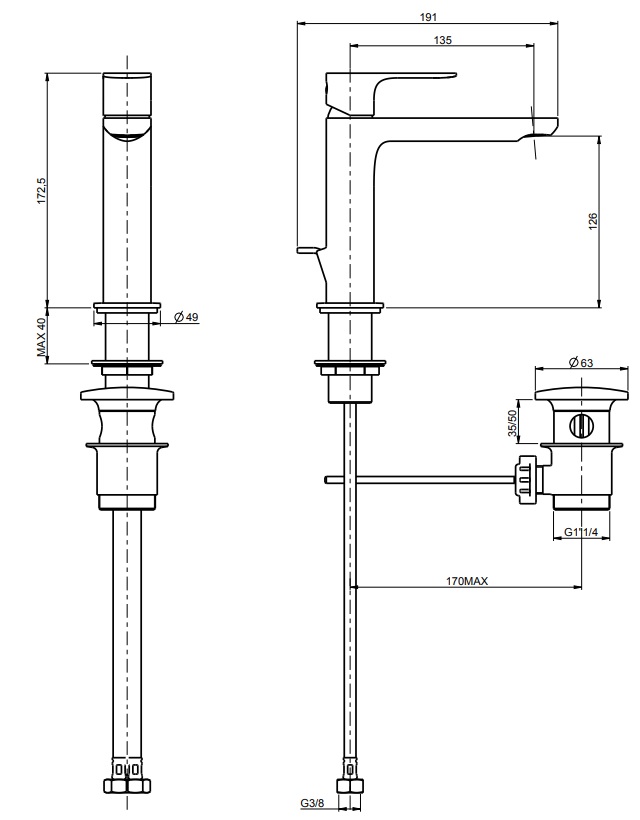 Il miscelatore lavabo è in ottone cromato con finiture lucide ed eleganti, a scarico automatico 1"1/4 (universale) completo di salterello, piletta e flessibile.