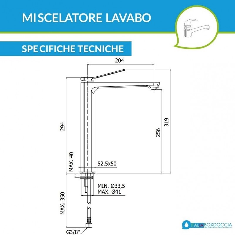 Il miscelatore non è dotato di salterello e di piletta di scarico, risultando dunque ideale da abbinare a tutti i lavabi realizzati in materiali moderni quali il vetro temperato ed il cristallo ed alla apposita piletta click clack. Il miscelatore è realizzato in ottone cromato e per questo resiste ad umidità ed agenti esterni. Gli attacchi standard di questo miscelatore alto garantiscono massima compatibilità con tutte le tipologie di impianti e flessibili per il bagno. Il miscelatore alto è versatilità, particolarità, stile e armonia. Crea il tuo stile con raffinatezza ed equilibrio di forme e proporzioni.