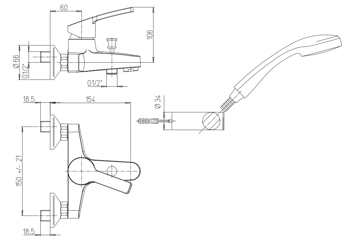 • Interasse 15/21 cm