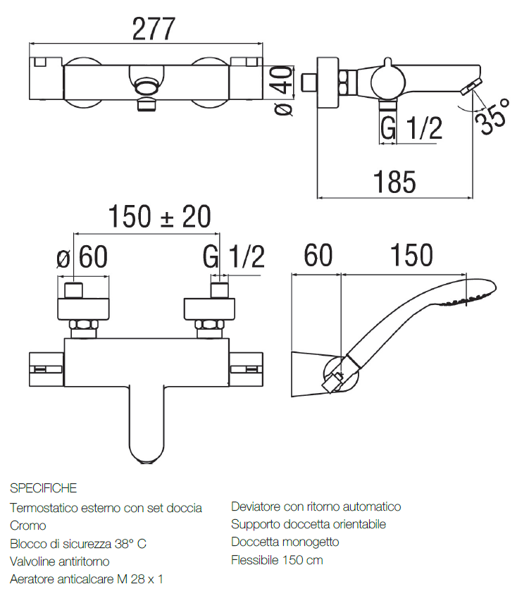 Miscelatore Vasca con set Doccia Nobili Modello Abc in Ottone Cromato