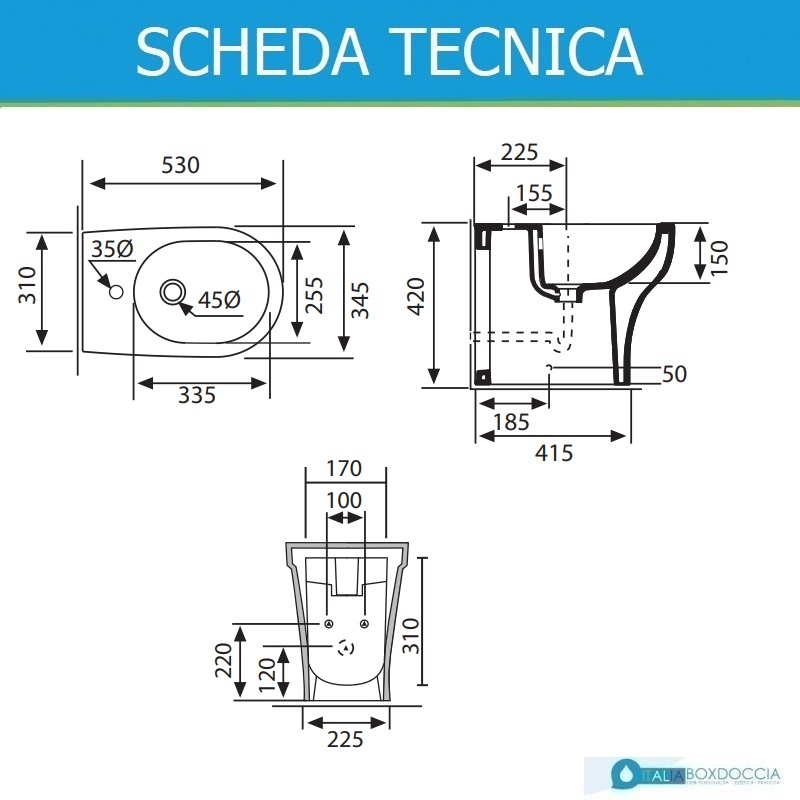 Bidet a pavimento cm 53 monoforo con troppopieno;