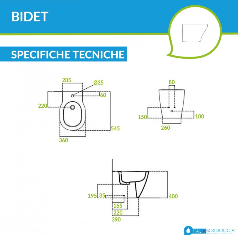– n°1 Bidet Filo muro Ideal Standard modello Connect monoforo per rubinetteria art. E799501 Bianco Lucido EU