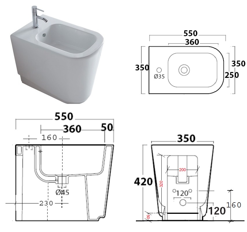 CERAMICA GALASSIA M2 Vaso a terra con scarico traslato.