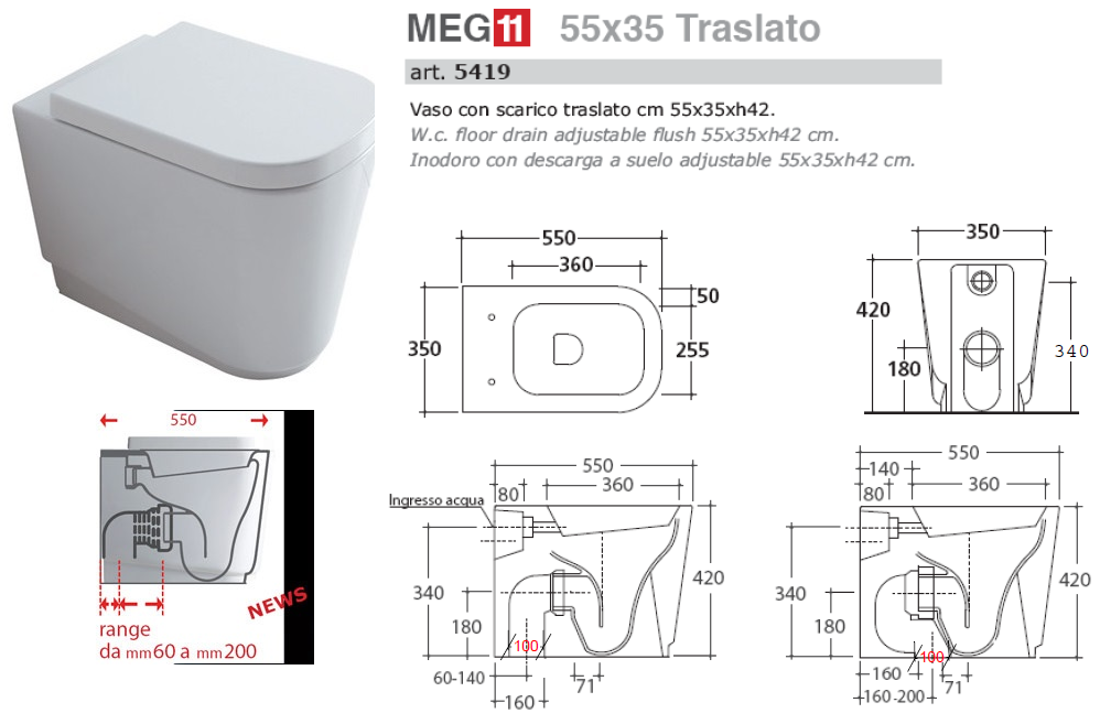 la curva tecnica “S” per scarico a pavimento Ø 10cm regolabile da 6cm a 14cm, con apposito kit di fissaggio (cod.art. 9064)