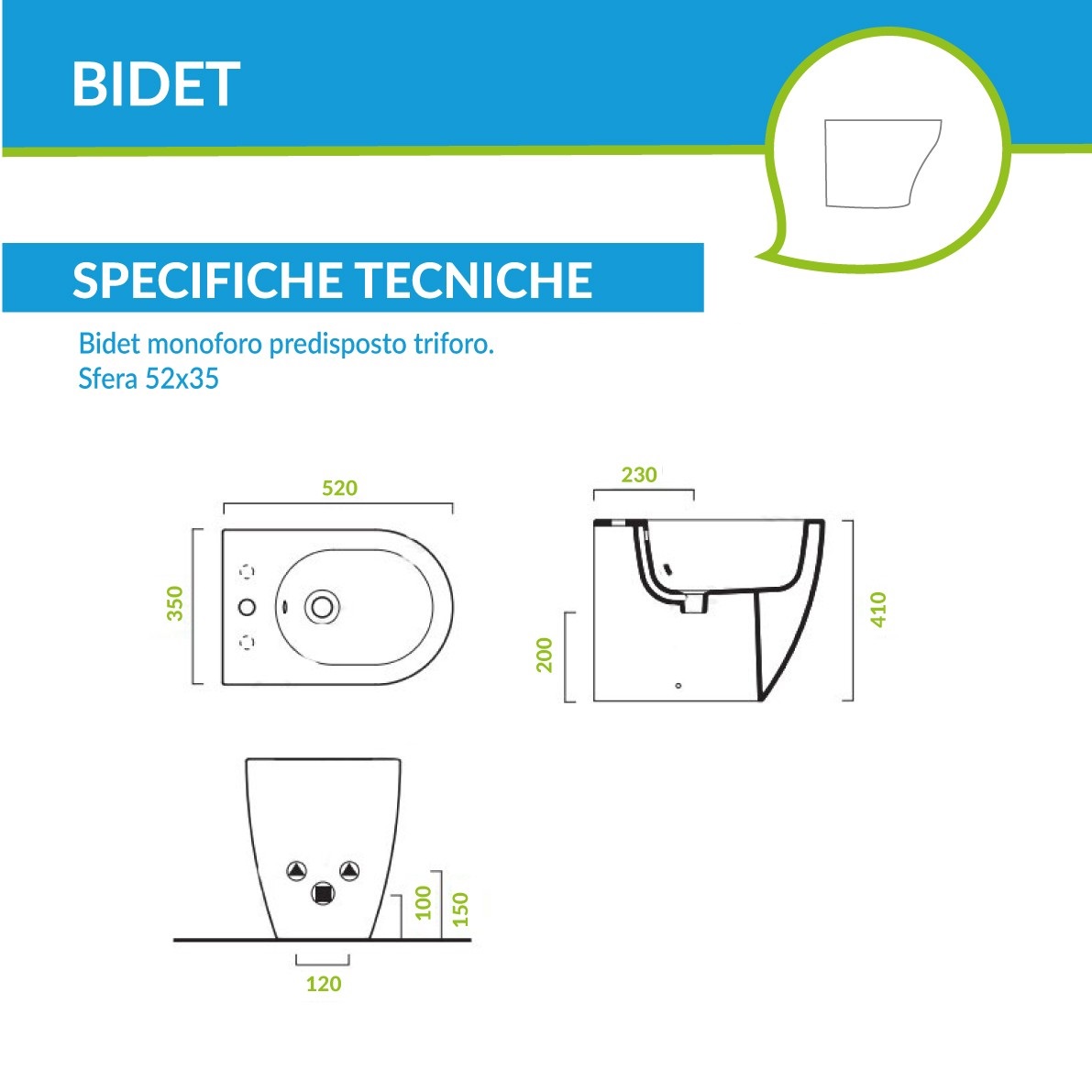 1 vaso filomuro con scarico a parete trasformabile a pavimento tramite curva tecnica;