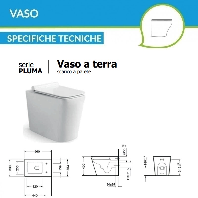 I sanitari PLUMA, presentano linee moderne e forme squadrate nonchè un ottimo rapporto qualità prezzo. I sanitari sono filomuro, per cui lo spazio tra sanitario e parete è ridottissimo, permettendo di guadagnare spazio e di agevolare le operazioni di pulizia. Inoltre, le tubature risultano coperte dal corpo del sanitario.