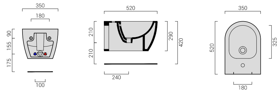 1. L’acqua fluisce nel vaso attraverso una fenditura posizionata nella parte posteriore interna del wc. La forma particolare dell’apertura consente di direzionare il flusso dell’acqua intorno al vaso lavandolo in modo silenzioso ed efficace