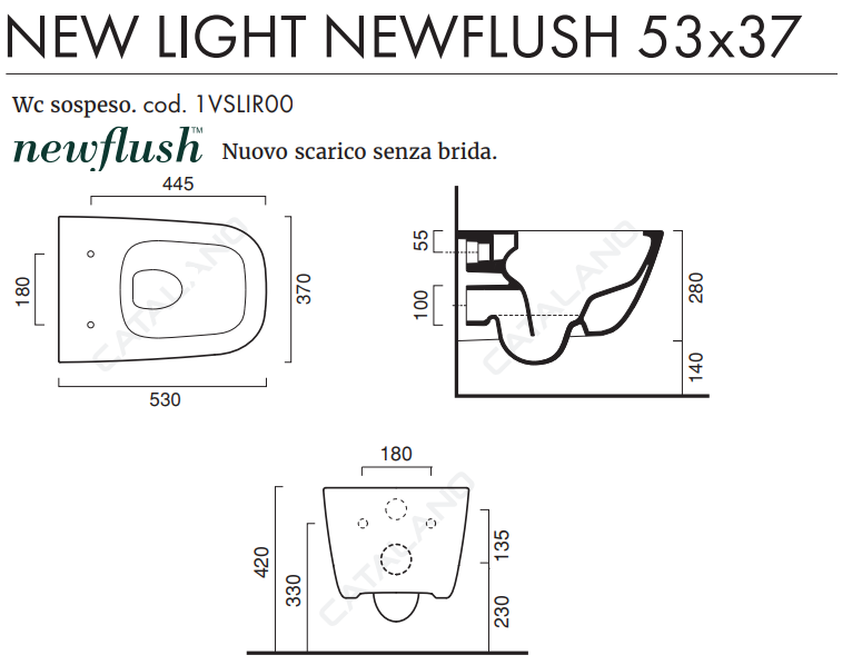 1 vaso sospeso senza brida New Light NF 53 con scarico a parete;