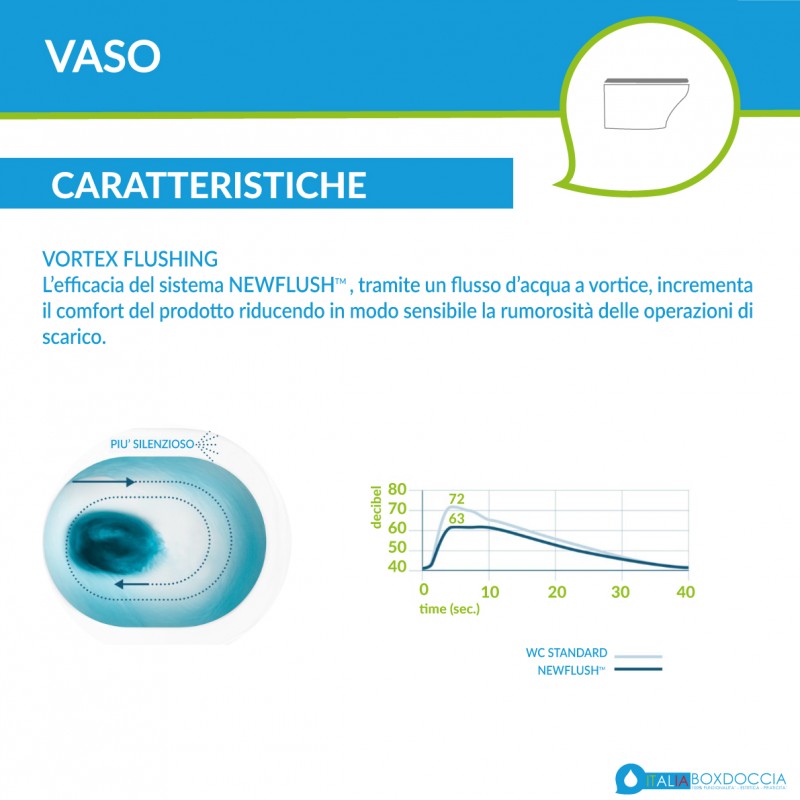 In questo scenario si colloca il progetto NEWFLUSH™ della Catalano: un’invenzione che rivoluziona le prestazioni e la funzionalità dei wc ceramici. Un sistema di scarico a vortice che sfrutta al meglio la quantità d’acqua disponibile garantendo la massima efficienza e che, grazie all’eliminazione della brida, consente operazioni di pulizia più facili ed efficaci.![]()