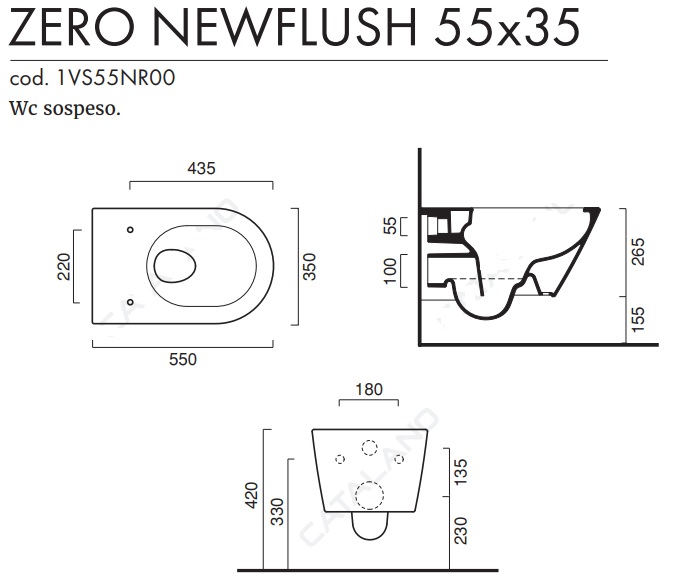 I sanitari sospesi di Ceramica Catalano in finitura bianco lucido, modello New Zero newflush, presentano forme semplici e linee morbide ed avvolgenti, soluzione ideale per chi vuole arredare il proprio ambiente bagno con un prodotto che possa vantare un'estetica moderna e una qualità senza precedenti. Il wc adotta il nuovo scarico newflush senza brida di ceramica catalano che offre una semplicità di pulizia mai vista prima. Tutti i prodotti di Ceramica Catalano utilizzano l'innovativo smalto Cataglaze che rende il sanitario più lucido ed evita, al contempo, la formazione di calcare. Il WC può essere abbinato al sedile in versione soft close, caratterizzato da un profilo minimal e dal nuovo sistema di cerniere a sgancio rapido che consente di sganciare con estrema facilità lo stesso dal WC nelle operazioni di pulizia. I sanitari sospesi, grazie alla loro particolare tipologia di installazione, rappresentano una soluzione ottimale dal punto di vista igienico in quanto, non poggiando a terra, agevolano le pulizie dei pavimenti e offrono una visione di spazio maggiore nel bagno.