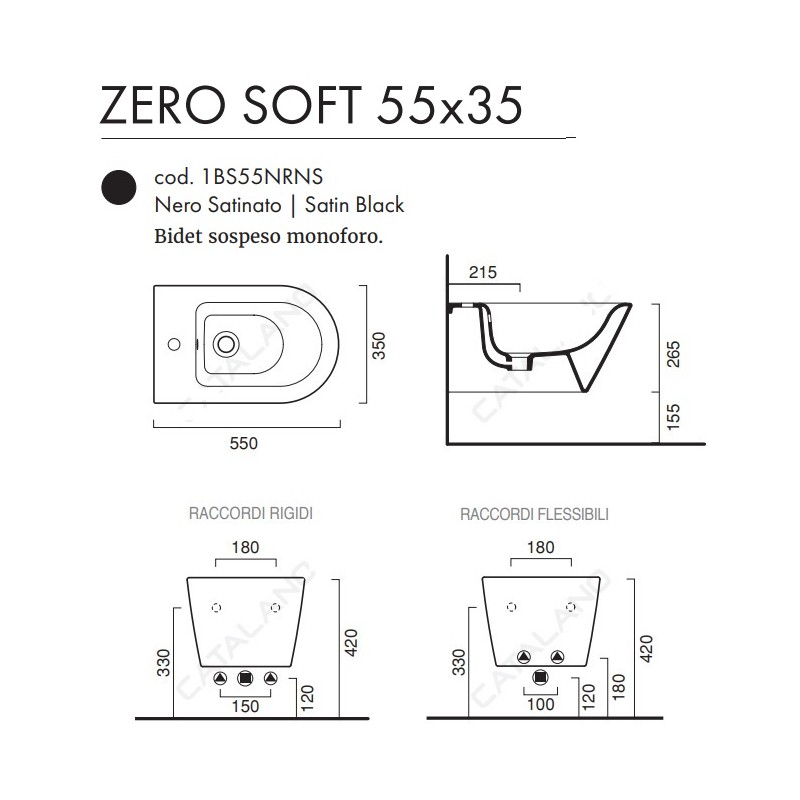 I sanitari sospesi colorati di Ceramica Catalano in finitura nero satinato, modello new zero 55x35, presentano forme semplici e linee morbide ed avvolgenti, soluzione ideale per chi vuole arredare il proprio ambiente bagno con un prodotto che possa vantare un'estetica moderna e una qualità senza precedenti. Il wc adotta il nuovo scarico newflush senza brida di ceramica catalano che offre una semplicità di pulizia mai vista prima, inoltre può essere abbinato al sedile in versione soft close plus, per una chiusura rallentata senza più rumori bruschi e accidentali. I sanitari sospesi, grazie alla loro particolare tipologia di installazione, rappresentano una soluzione ottimale dal punto di vista igienico in quanto, non poggiando a terra, agevolano le pulizie dei pavimenti e offrono una visione di spazio maggiore nel bagno.