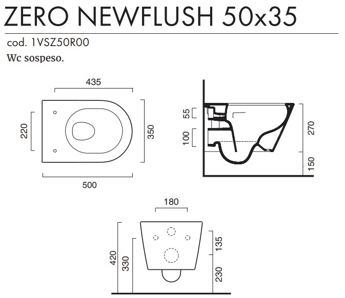 1 vaso sospeso senza brida Zero NF 50 con scarico a parete;