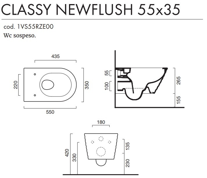 1 vaso sospeso senza brida Classy NF 55 con scarico a parete;