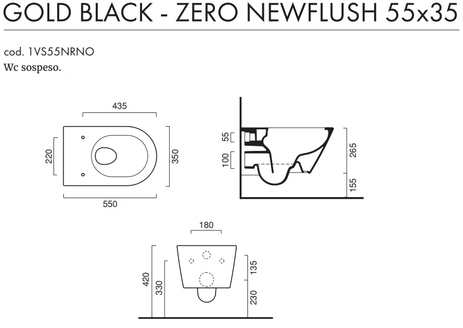 1 vaso sospeso senza brida Zero NF 55 con scarico a parete;