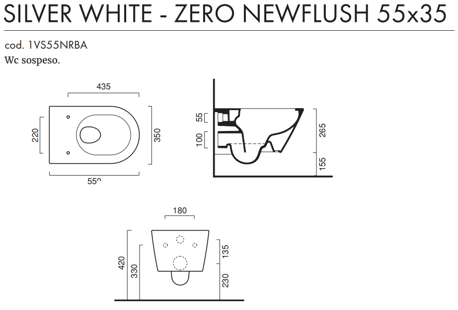 1 vaso sospeso senza brida Zero NF 55 con scarico a parete;