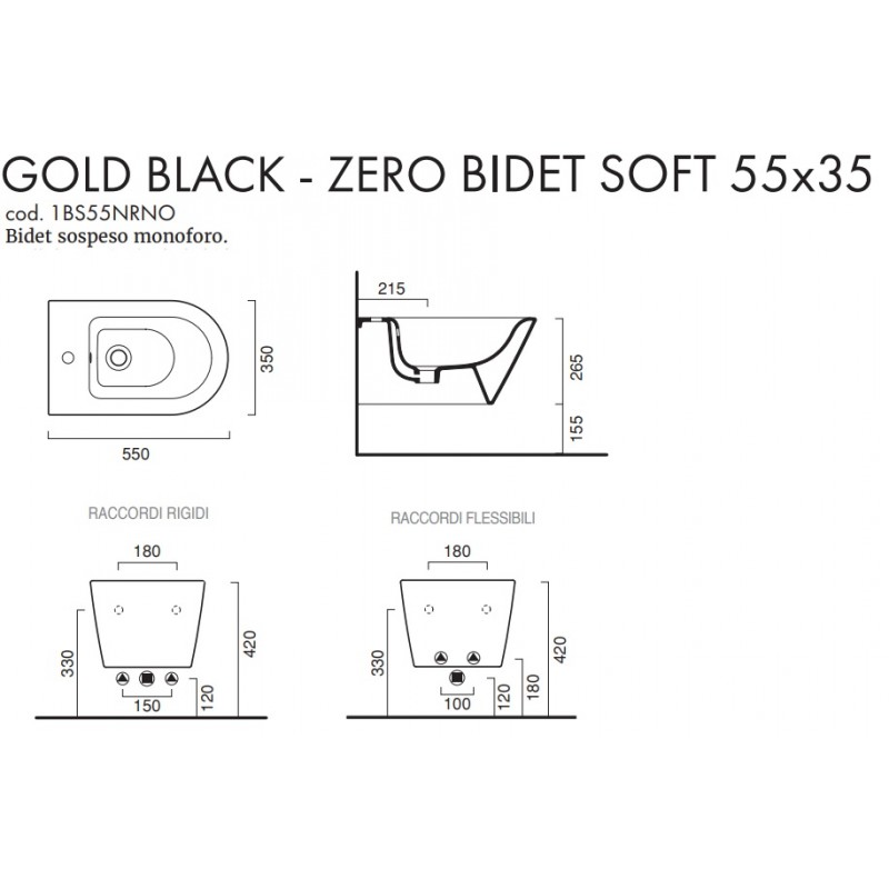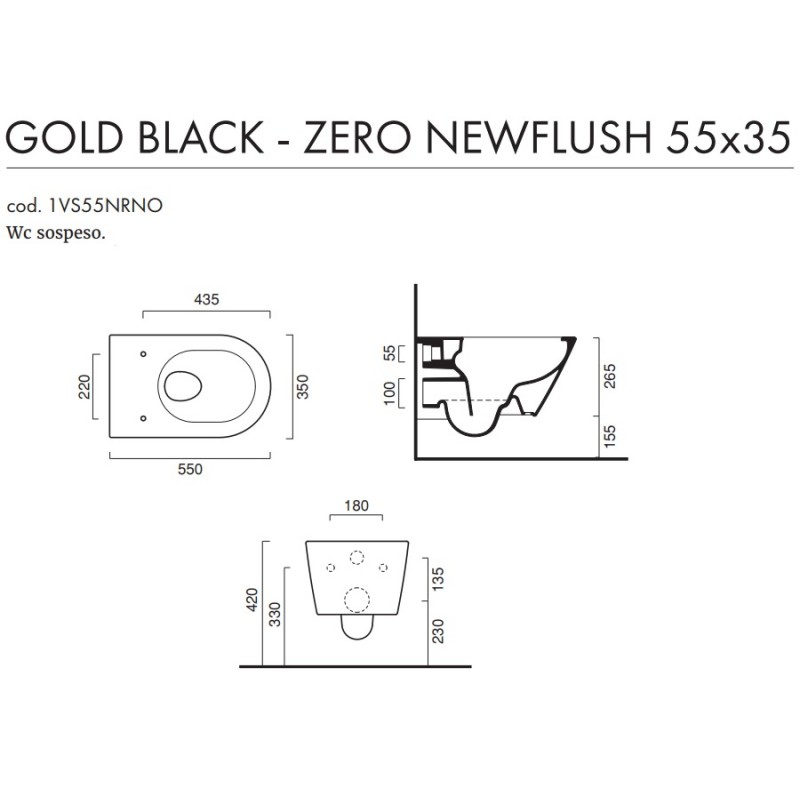 I sanitari sospesi di Ceramica Catalano in finitura Gold Black, modello new zero 55x35, presentano forme semplici e linee morbide ed avvolgenti, soluzione ideale per chi vuole arredare il proprio ambiente bagno con un prodotto che possa vantare un'estetica moderna e una qualità senza precedenti. Il wc adotta il nuovo scarico newflush senza brida di ceramica catalano che offre una semplicità di pulizia mai vista prima, inoltre può essere abbinato al sedile in versione soft close plus, per una chiusura rallentata senza più rumori bruschi e accidentali. I sanitari sospesi, grazie alla loro particolare tipologia di installazione, rappresentano una soluzione ottimale dal punto di vista igienico in quanto, non poggiando a terra, agevolano le pulizie dei pavimenti e offrono una visione di spazio maggiore nel bagno.