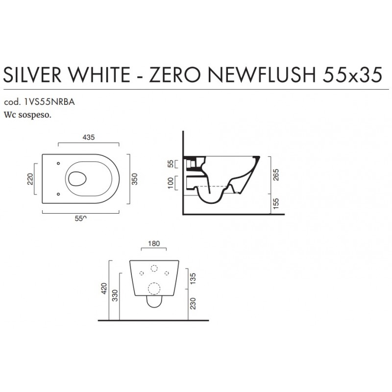 I sanitari sospesi di Ceramica Catalano in finitura Silver White, modello new zero 55x35, presentano forme semplici e linee morbide ed avvolgenti, soluzione ideale per chi vuole arredare il proprio ambiente bagno con un prodotto che possa vantare un'estetica moderna e una qualità senza precedenti. Il wc adotta il nuovo scarico newflush senza brida di ceramica catalano che offre una semplicità di pulizia mai vista prima, inoltre può essere abbinato al sedile in versione soft close plus, per una chiusura rallentata senza più rumori bruschi e accidentali. I sanitari sospesi, grazie alla loro particolare tipologia di installazione, rappresentano una soluzione ottimale dal punto di vista igienico in quanto, non poggiando a terra, agevolano le pulizie dei pavimenti e offrono una visione di spazio maggiore nel bagno.