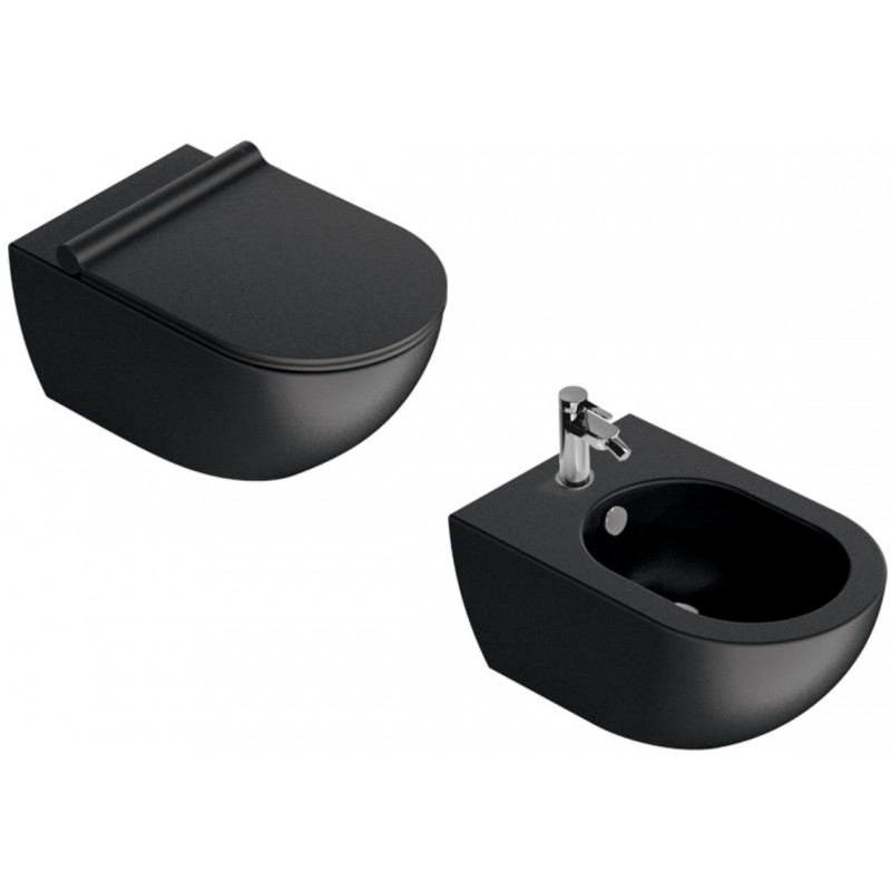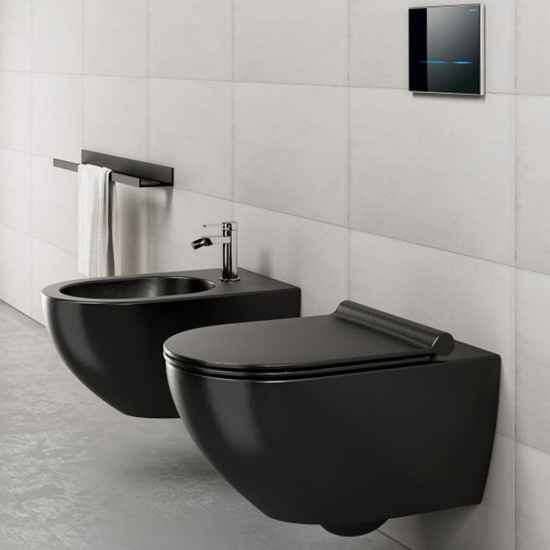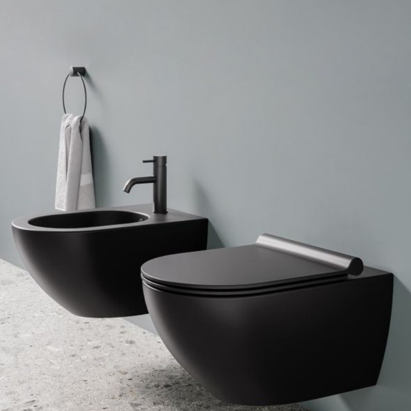 I sanitari sospesi colorati di Ceramica Catalano in finitura nero satinato, modello Sfera 54x35, presentano forme semplici e linee morbide ed avvolgenti, soluzione ideale per chi vuole arredare il proprio ambiente bagno con un prodotto che possa vantare un'estetica moderna e una qualità senza precedenti. Il wc adotta il nuovo scarico newflush senza brida di ceramica catalano che offre una semplicità di pulizia mai vista prima, inoltre può essere abbinato al sedile in versione soft close plus, per una chiusura rallentata senza più rumori bruschi e accidentali. I sanitari sospesi, grazie alla loro particolare tipologia di installazione, rappresentano una soluzione ottimale dal punto di vista igienico in quanto, non poggiando a terra, agevolano le pulizie dei pavimenti e offrono una visione di spazio maggiore nel bagno.