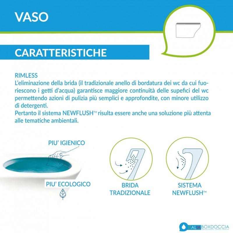 In questo scenario si colloca il progetto NEWFLUSH™ della Catalano: un’invenzione che rivoluziona le prestazioni e la funzionalità dei wc ceramici. Un sistema di scarico a vortice che sfrutta al meglio la quantità d’acqua disponibile garantendo la massima efficienza e che, grazie all’eliminazione della brida, consente operazioni di pulizia più facili ed efficaci.