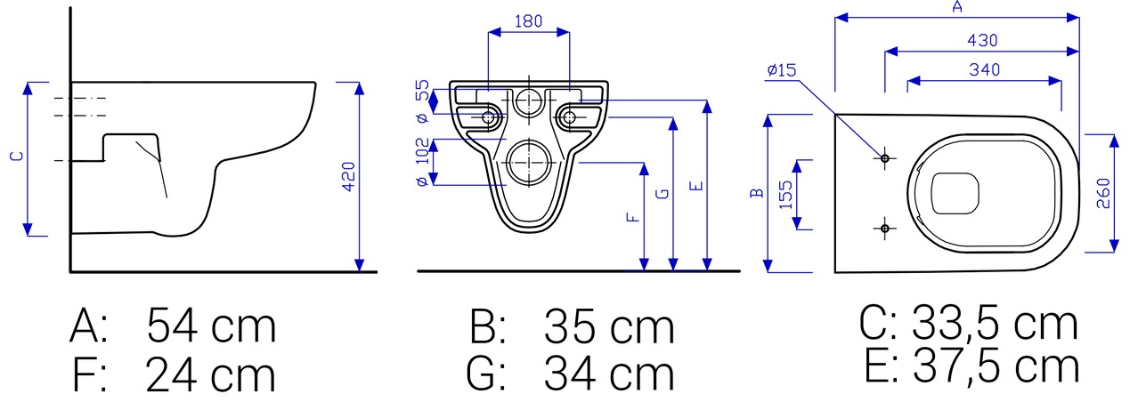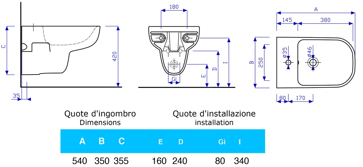 - Misure Bidet: 35 cm x 54 cm x h 33,5 cm