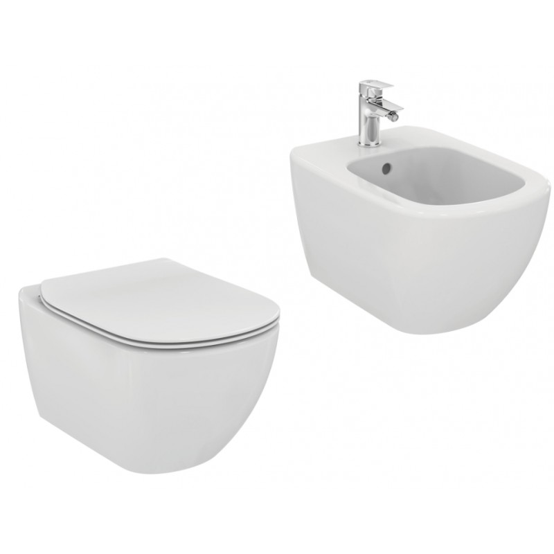 Nuova collezione di sanitari sospesi firmata Ideal Standard dalle forme morbide e moderne. Il modello tesi nasce con l'obiettivo di essere adattabile ad ogni tipo di ambiente bagno, a prescindere dallo stile. Infatti, la linea e arrotondata, morbida e allo stesso tempo semplice ed elegante. Il WC è abbinato al sedile in versione slim a chiusura tradizionale, profilo minimal e sistema di cerniere a smontaggio rapido che consente di sganciare con estrema facilità lo stesso dal WC nelle operazioni di pulizia. Entrambi i sanitari hanno il sistema di fissaggio completamente nascosto e vengono forniti completi di kit TT02299548 che permette di ancorare i sanitari sulle staffe metalliche installate a parete con estrema facilità. Le dimensioni di entrambi i sanitari rientrano nella media con una larghezza di 36 cm e una profondità di 53,5 cm. Trattandosi di sanitari sospesi, la loro installazione rende l’ambiente bagno pratico e funzionale rendendo la pulizia nella zona del wc e del bidet un operazione molto semplice.