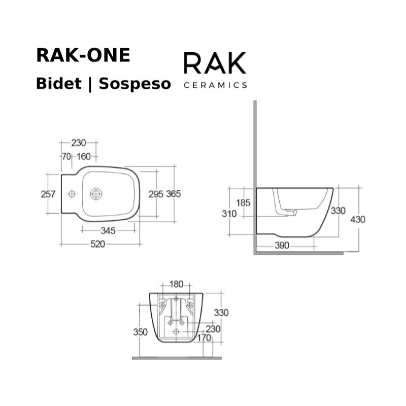 – n°1 Bidet monoforo sospeso rak ceramics modello one art. EL08AWHA bianco lucido EU (dim.: 52 P X 29,5 L cm)
