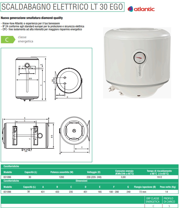 EGO Scaldabagno classico che unisce qualità e semplicità con la tecnologia Atlantic Lo scaldacqua Ego è facile da installare e utilizzare. È creato in modo tale da permettere una facilità di ispezione. Grazie al termostato ROD è inoltre possibile regolare la temperatura e procedere al reset manuale, in caso di surriscaldamento.