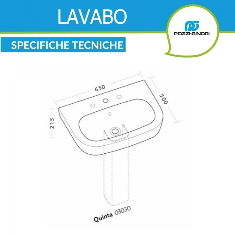 Lavandino Pozzi Ginori da 52 cm con piano rubinetteria su colonna. Le linee morbide e le forme ridotte fanno di questo lavabo un elemento d'arredo e di design per dare un tocco di originalità e personalità al bagno.