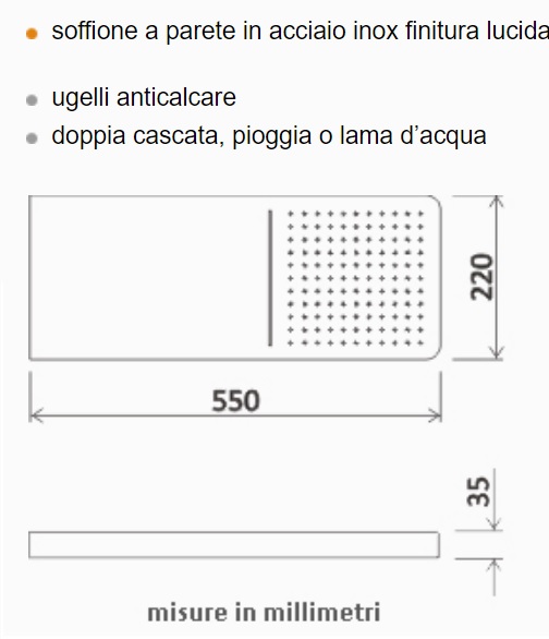 Questo soffione a parete rettangolare per doccia in acciaio inox 55 x 22 cm è pensato per essere installato in tutte le cabine doccia: si inserisce perfettamente in tutte le stanze da bagno.