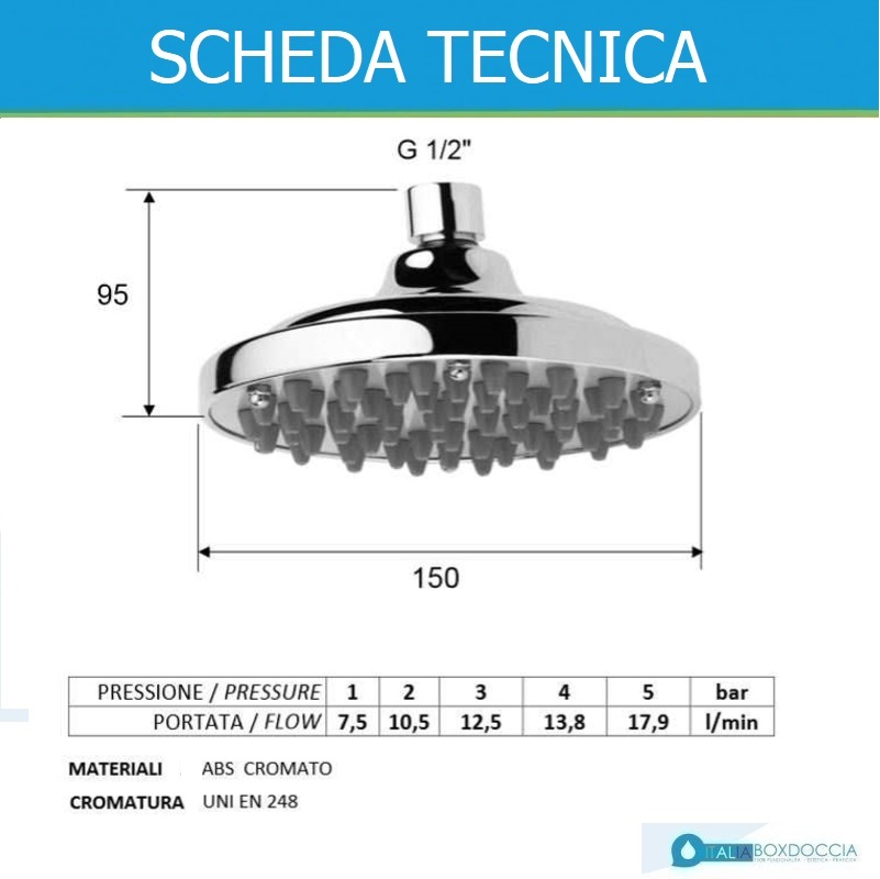 Soffione doccia, forma a cerchio di diametro 150mm e dal design originale ed accattivante, assolutamente perfetto anche per il bagno dallo stile più raffinato. Sono diverse le particolarità che rendono questo articolo così interessante e così piacevole sul piano estetico, a cominciare dai suoi getti anticalcare.
