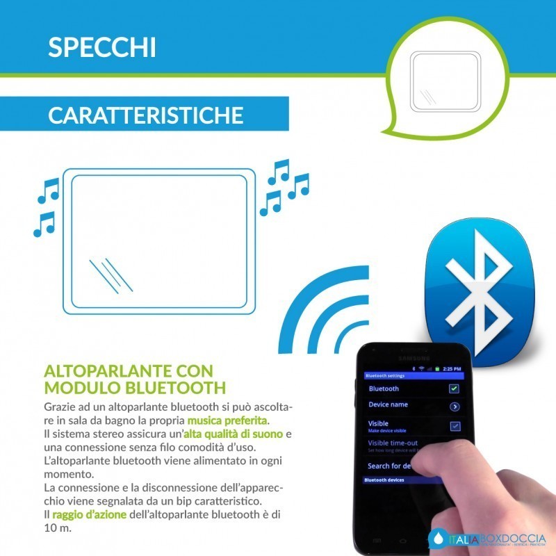 La moderna tecnologia applicata al design da bagno ha permesso la produzione di oggetti funzionali e, al tempo stesso, raffinati come gli specchi con altoparlanti bluetooth + orologio, complementi sempre più ricercati da chi ama circondarsi di elementi d'arredo pratici e funzionali.