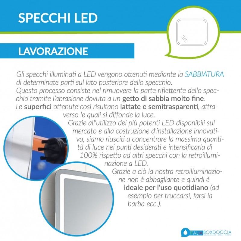 Gli specchi led pensati per il bagno rappresentano l'incontro perfetto tra praticità e progresso tecnico; l'utilizzo dei led sono caratteristiche irrinunciabili per chi ama circondarsi di comfort e bellezza. Anche l'ambiente bagno può avvicinarsi alla tecnologia grazie all'integrazione di dispositivi elettronici e all'utilizzo di design d'avanguardia.