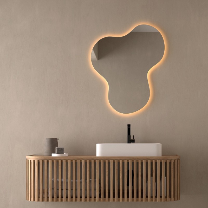 Scegliendo questo specchio retroilluminato led si completerà al meglio una composizione bagno moderna. La forma particolare crea una superficie riflettente ampia e confortevole, dimensionata per arredare con stile ogni ambiente bagno.