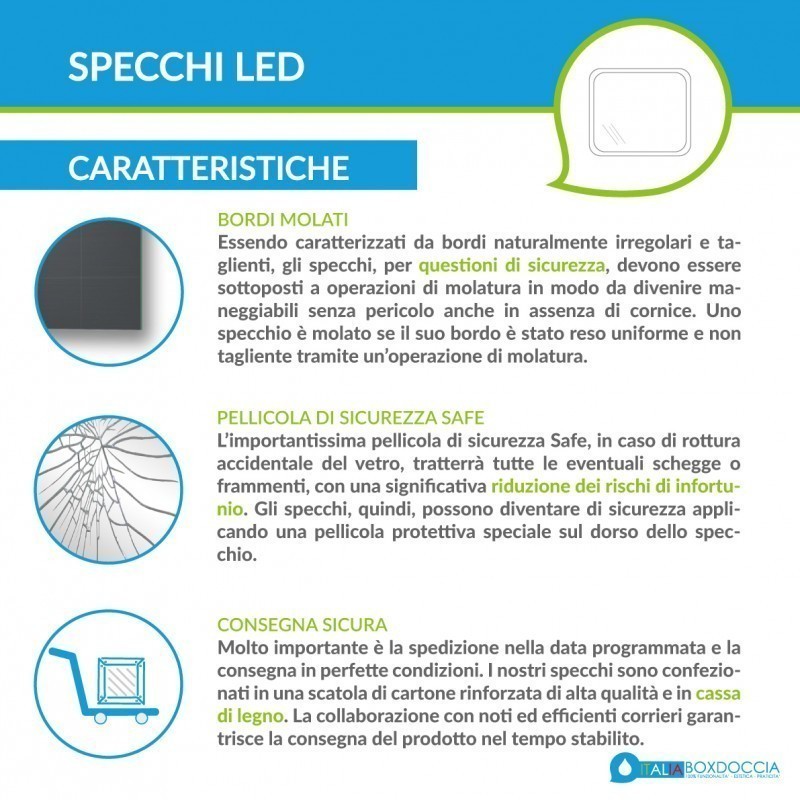 Questo specchio rotondo è un modello che si distingue molto per le luci a LED che lo circondano. Lo specchio è stato realizzato con lastre di cristallo di ottima qualità.