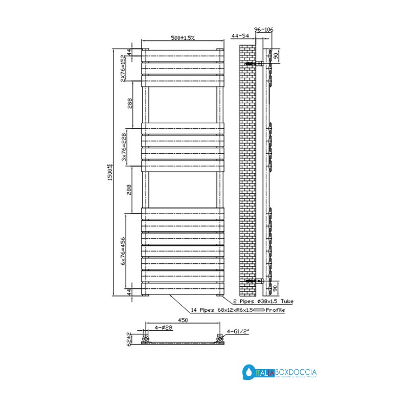 L'installazione verticale e la forma compatta con tubi a piatti orizzontali di 6,8 x 1,2 cm lo rendono perfetto per bagni di qualsiasi dimensione. Il kit di fissaggio incluso facilita l'installazione.