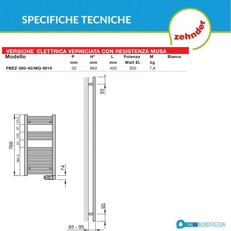 Scaldasalviette in acciaio con tubi Diam. 23 mm disposti orizzontalmente su collettori con profilo a D 30X40 mm. Dimensioni: P. 30 x H. 1540 mm. Altezza compresa di scatola di comando. Versione con Resistenza MUSA, posizionamento possibile solo a destra. Controllo della temperatura ambiente. Programmazione giornaliera / settimanale.