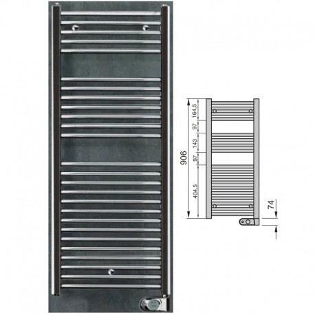 Scaldasalviette in acciaio con tubi Diam. 23 mm disposti orizzontalmente su collettori con profilo a D 30X40 mm. Dimensioni: P. 30 x H. 1540 mm. Altezza compresa di scatola di comando. Versione con Resistenza MUSA, posizionamento possibile solo a destra. Controllo della temperatura ambiente. Programmazione giornaliera / settimanale.