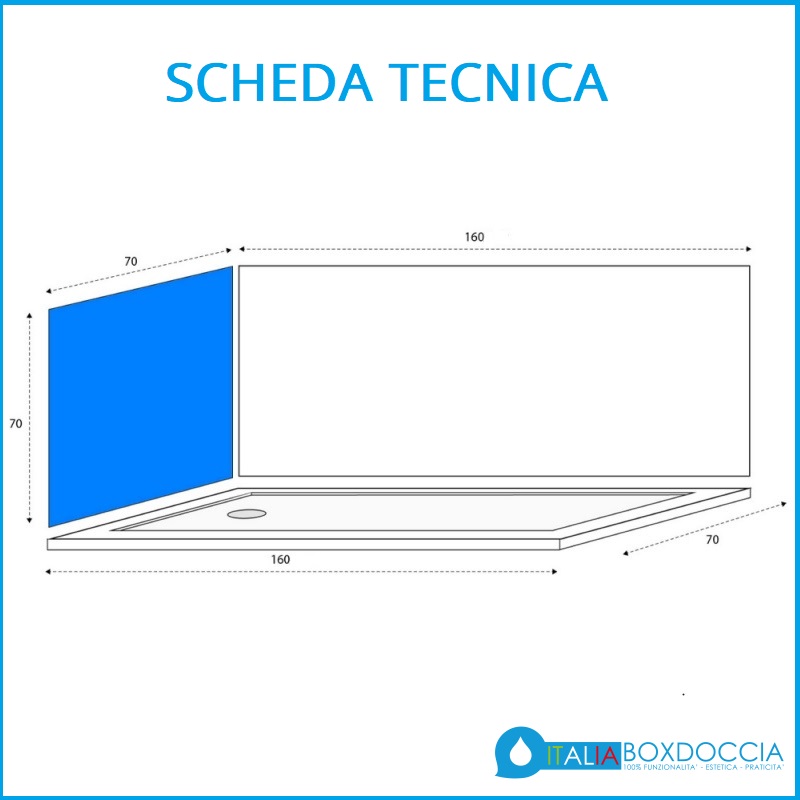 • Misura piatto doccia: 70 x 160 cm