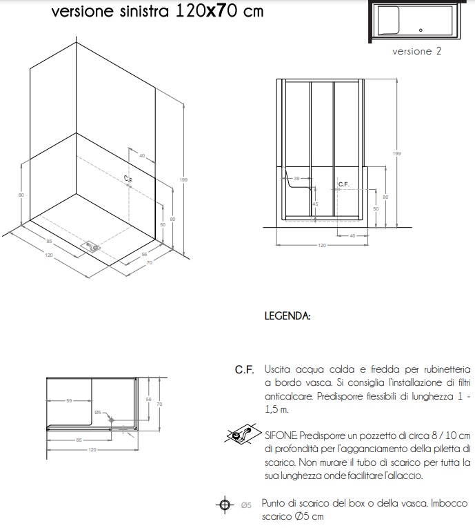 - Altezza totale del prodotto piatto + box doccia 199 cm.