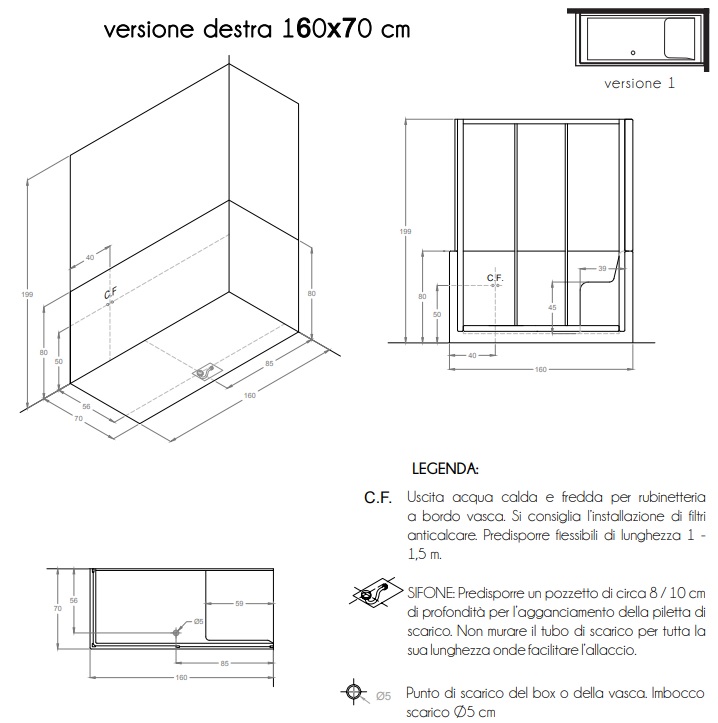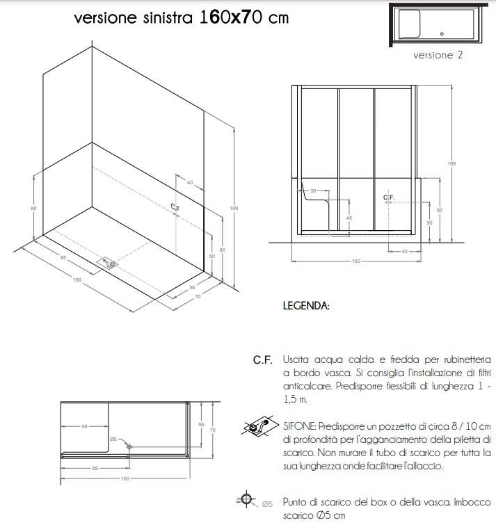 Trasforma la tua vecchia vasca in un comodo box doccia con seduta integrata! Questo Prodotto offre la possibilità di trasformare la vostra vecchia vasca in box doccia. Disponibile in diverse dimensioni che permettono soluzioni anche per ambienti piccoli e particolari. Il piatto doccia e una struttura monoblocco con seduta integrata. Disponibile nelle misure:
